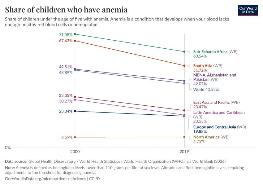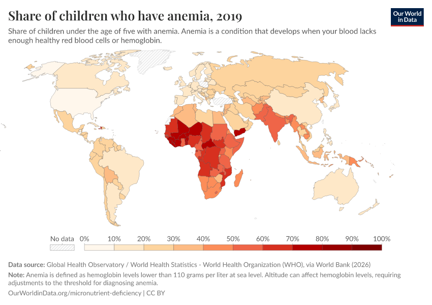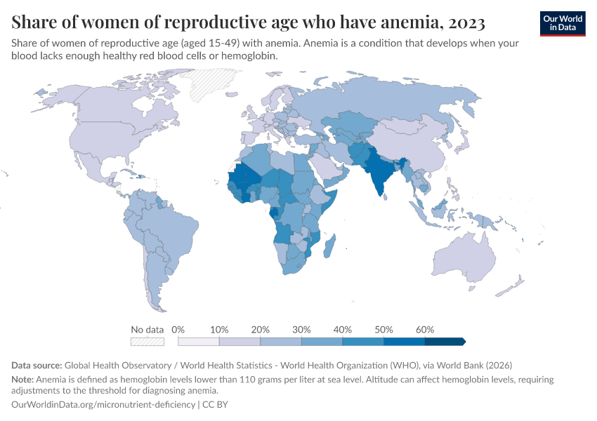 Hannah Ritchie (2024) - “Billions of people suffer from anemia, but there are cheap ways to reduce this” Published online at OurWorldinData.org. Retrieved from: 'https://who-regions.owid.pages.dev:8789/20260304-094028/billions-people-suffer-anemia-cheap-ways-reduce.html' [Online Resource] (archived on March 4, 2026).BibTeX citation