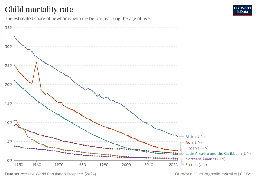 Hannah Ritchie (2018) - “How child mortality has declined in the last two centuries” Published online at OurWorldinData.org. Retrieved from: 'https://who-regions.owid.pages.dev:8789/20260304-094028/child-mortality-global-overview.html' [Online Resource] (archived on March 4, 2026).BibTeX citation