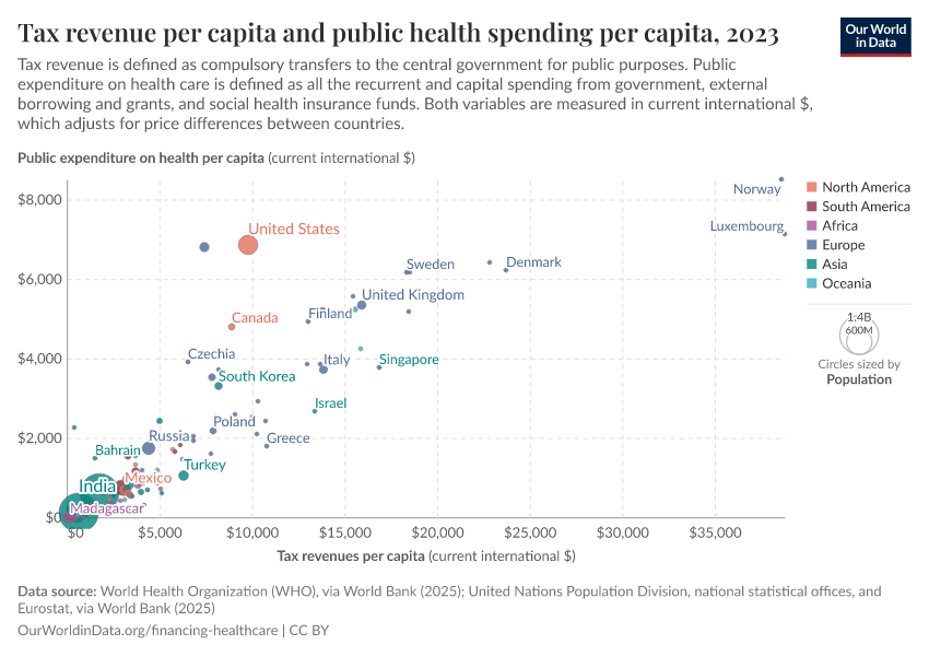 Esteban Ortiz-Ospina, Pablo Arriagada, and Max Roser (2017) - “Healthcare Spending” Published online at OurWorldinData.org. Retrieved from: 'https://who-regions.owid.pages.dev/financing-healthcare' [Online Resource]BibTeX citation