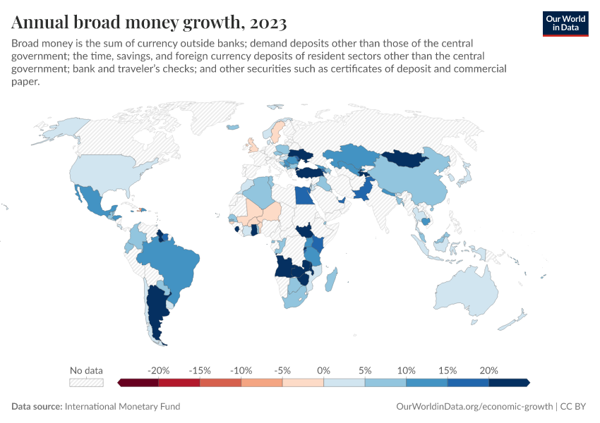 “Data Page: Annual broad money growth”. Our World in Data (2026). Data adapted from International Monetary Fund. Retrieved from https://who-regions.owid.pages.dev:8789/20260304-094028/grapher/annual-broad-money-growth.html [online resource] (archived on March 4, 2026).How to cite this data
