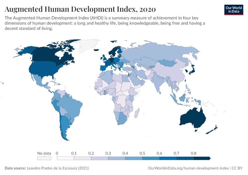 Leandro Prados de la Escosura (2021) – with minor processing by Our World in Data. “Augmented Human Development Index” [dataset]. Leandro Prados de la Escosura, “Augmented Human Development Index (AHDI) - Country data”; Leandro Prados de la Escosura, “Augmented Human Development Index (AHDI) - Regional data” [original data]. Retrieved March 10, 2026 from https://who-regions.owid.pages.dev:8789/20260304-094028/grapher/augmented-human-development-index.html (archived on March 4, 2026).