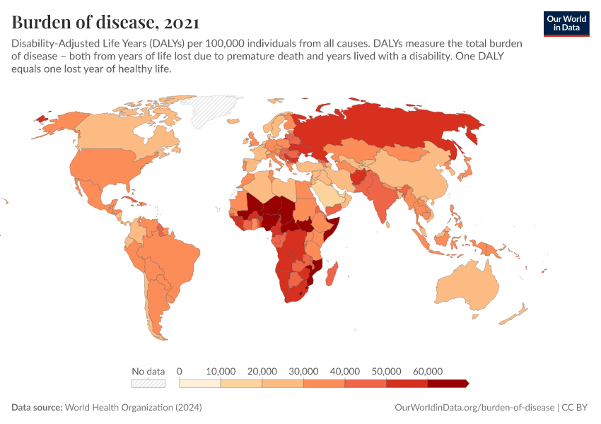 “Data Page: Burden of disease”, part of the following publication: Esteban Ortiz-Ospina and Max Roser (2016) - “Global Health”. Data adapted from World Health Organization. Retrieved from https://who-regions.owid.pages.dev:8789/20260304-094028/grapher/burden-of-disease-who.html [online resource] (archived on March 4, 2026).How to cite this data