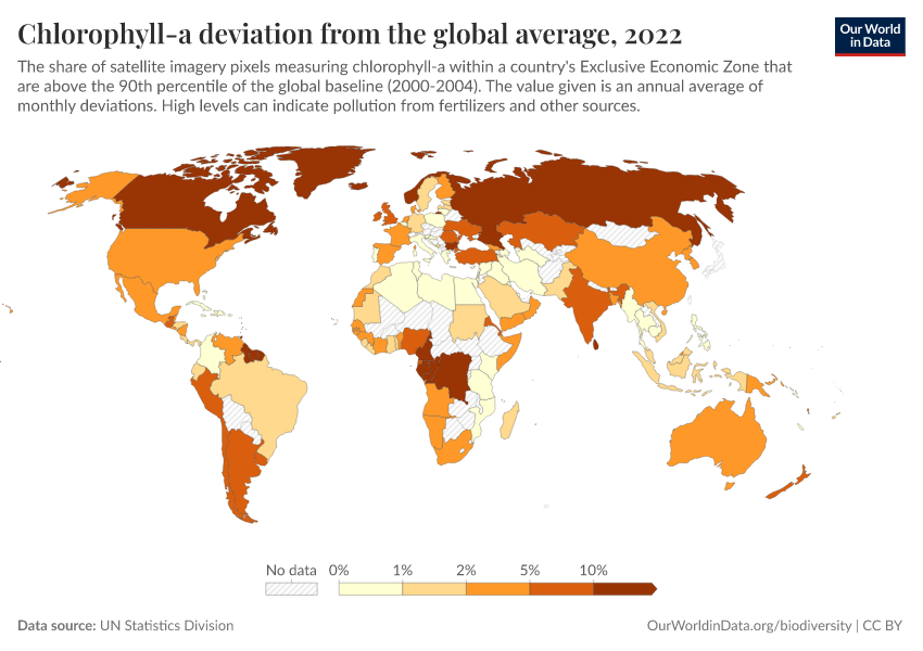 “Data Page: Chlorophyll-a deviation from the global average”. Our World in Data (2026). Data adapted from UN Statistics Division. Retrieved from https://who-regions.owid.pages.dev:8789/20260304-094028/grapher/chlorophyll-a-deviation-from-the-global-average.html [online resource] (archived on March 4, 2026).How to cite this data