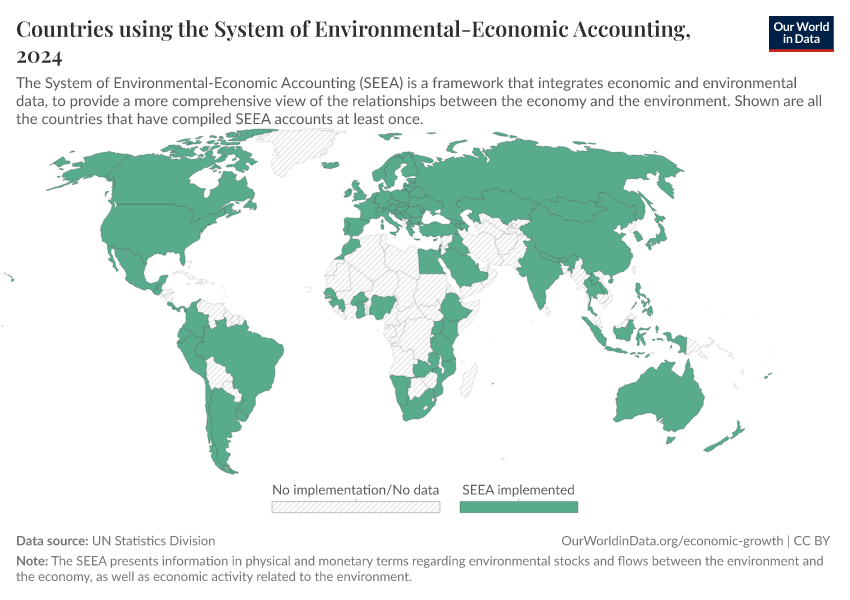 “Data Page: Countries using the System of Environmental-Economic Accounting”. Our World in Data (2026). Data adapted from UN Statistics Division. Retrieved from https://who-regions.owid.pages.dev:8789/20260304-094028/grapher/countries-using-the-system-of-environmental-economic-accounting.html [online resource] (archived on March 4, 2026).How to cite this data