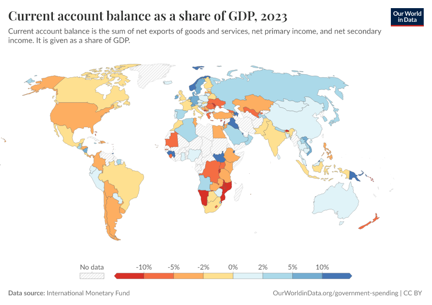 “Data Page: Current account balance as a share of GDP”. Our World in Data (2026). Data adapted from International Monetary Fund. Retrieved from https://who-regions.owid.pages.dev:8789/20260304-094028/grapher/current-account-balance-as-a-proportion-of-gdp.html [online resource] (archived on March 4, 2026).How to cite this data