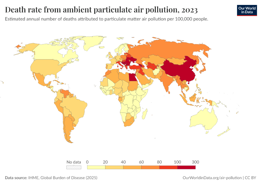 IHME, Global Burden of Disease (2025) – with major processing by Our World in Data. “Death rate from ambient particulate air pollution” [dataset]. IHME, Global Burden of Disease, “Global Burden of Disease - Risk Factors - Deaths” [original data]. Retrieved March 10, 2026 from https://who-regions.owid.pages.dev:8789/20260304-094028/grapher/death-rate-from-ambient-particulate-air-pollution.html (archived on March 4, 2026).