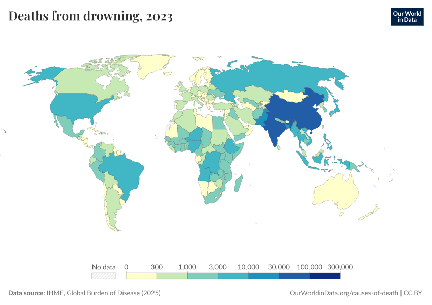 “Data Page: Deaths from drowning”, part of the following publication: Esteban Ortiz-Ospina and Max Roser (2016) - “Global Health”. Data adapted from IHME, Global Burden of Disease. Retrieved from https://who-regions.owid.pages.dev:8789/20260304-094028/grapher/deaths-from-drowning.html [online resource] (archived on March 4, 2026).How to cite this data