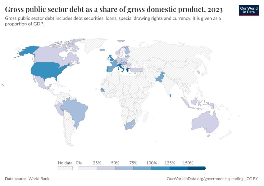 “Data Page: Gross public sector debt as a share of gross domestic product”. Our World in Data (2026). Data adapted from World Bank. Retrieved from https://who-regions.owid.pages.dev:8789/20260304-094028/grapher/gross-public-sector-debt-as-a-proportion-of-gdp.html [online resource] (archived on March 4, 2026).How to cite this data