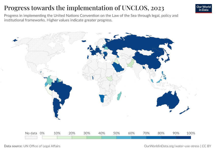 “Data Page: Progress towards the implementation of UNCLOS”. Our World in Data (2026). Data adapted from UN Office of Legal Affairs. Retrieved from https://who-regions.owid.pages.dev:8789/20260304-094028/grapher/implementation-of-unclos.html [online resource] (archived on March 4, 2026).How to cite this data