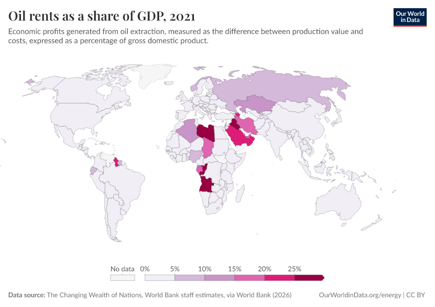 “Data Page: Oil rents as a share of GDP”. Our World in Data (2026). Data adapted from The Changing Wealth of Nations, World Bank staff estimates, via World Bank. Retrieved from https://who-regions.owid.pages.dev:8789/20260304-094028/grapher/oil-rents-as-a-share-of-gdp.html [online resource] (archived on March 4, 2026).How to cite this data