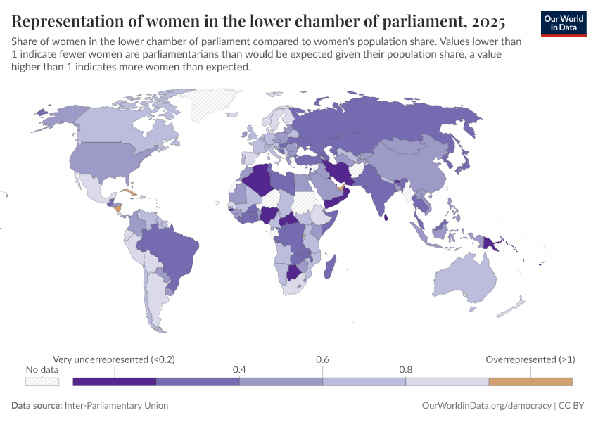 “Data Page: Representation of women in the lower chamber of parliament”. Our World in Data (2026). Data adapted from Inter-Parliamentary Union. Retrieved from https://who-regions.owid.pages.dev:8789/20260304-094028/grapher/representation-of-women-in-lower-chamber-of-parliament.html [online resource] (archived on March 4, 2026).How to cite this data