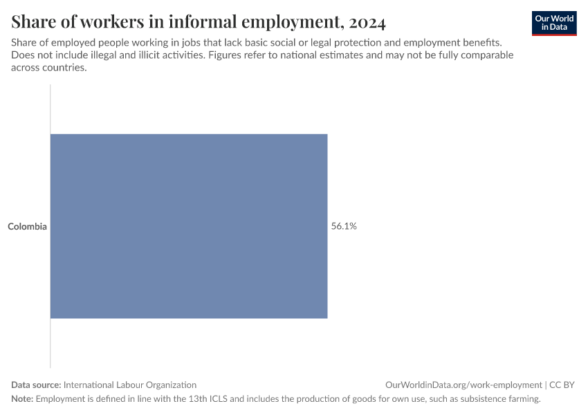 “Data Page: Share of workers in informal employment”. Our World in Data (2026). Data adapted from International Labour Organization. Retrieved from https://who-regions.owid.pages.dev:8789/20260304-094028/grapher/share-in-informal-employment.html [online resource] (archived on March 4, 2026).