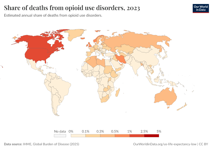 “Data Page: Share of deaths from opioid use disorders”, part of the following publication: Esteban Ortiz-Ospina and Max Roser (2016) - “Global Health”. Data adapted from IHME, Global Burden of Disease. Retrieved from https://who-regions.owid.pages.dev:8789/20260304-094028/grapher/share-of-deaths-from-opioid-overdoses.html [online resource] (archived on March 4, 2026).How to cite this data
