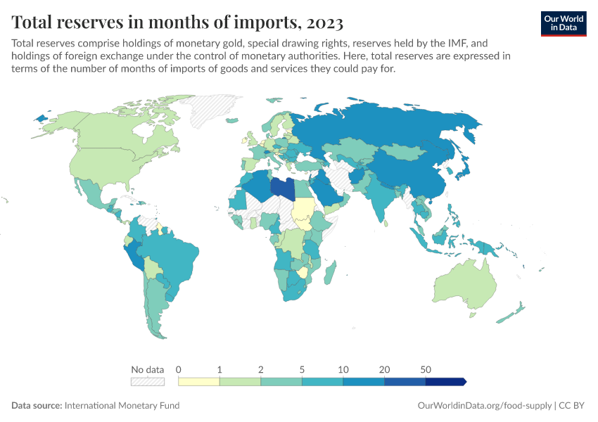 “Data Page: Total reserves in months of imports”. Our World in Data (2026). Data adapted from International Monetary Fund. Retrieved from https://who-regions.owid.pages.dev:8789/20260304-094028/grapher/total-reserves-in-months-of-imports.html [online resource] (archived on March 4, 2026).How to cite this data