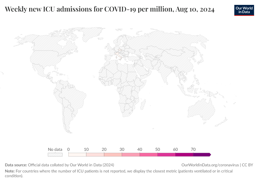 Official data collated by Our World in Data (2024) – processed by Our World in Data. “Weekly new ICU admissions for COVID-19 per million” [dataset]. Official data collated by Our World in Data, “COVID-19, hospitalisations” [original data]. Retrieved March 9, 2026 from https://who-regions.owid.pages.dev:8789/20260304-094028/grapher/weekly-icu-admissions-covid-per-million.html (archived on March 4, 2026).
