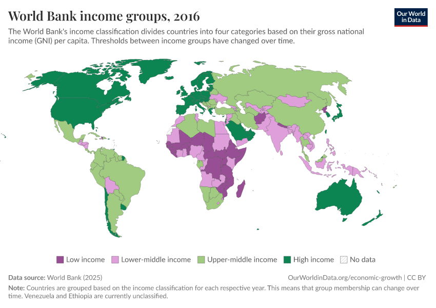 World Bank (2025) – with major processing by Our World in Data. “World Bank income groups” [dataset]. World Bank, “Income Classifications” [original data]. Retrieved March 9, 2026 from https://who-regions.owid.pages.dev:8789/20260304-094028/grapher/world-bank-income-groups.html (archived on March 4, 2026).