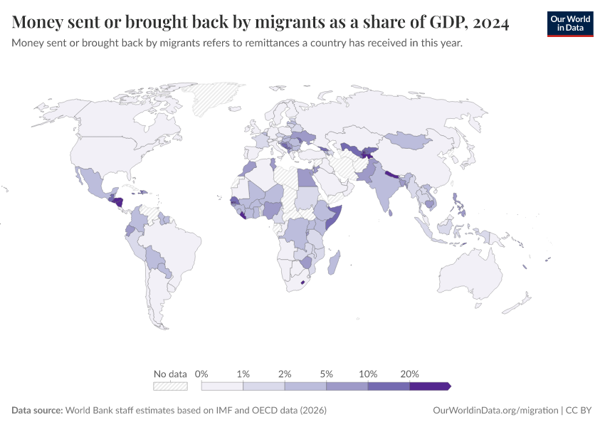 Simon van Teutem and Tuna Acisu (2025) - “The great global redistributor we never hear about: money sent or brought back by migrants” Published online at OurWorldinData.org. Retrieved from: 'https://who-regions.owid.pages.dev:8789/20260304-094028/great-global-redistributor-money-sent-brought-back-migrants-remittances.html' [Online Resource] (archived on March 4, 2026).BibTeX citation