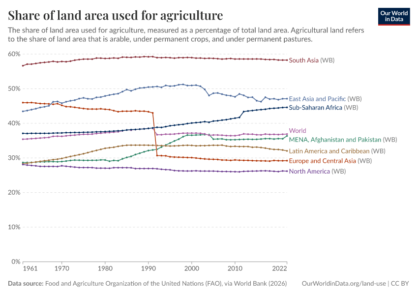 Hannah Ritchie and Max Roser (2019) - “Land Use” Published online at OurWorldinData.org. Retrieved from: 'https://who-regions.owid.pages.dev/land-use' [Online Resource]BibTeX citation