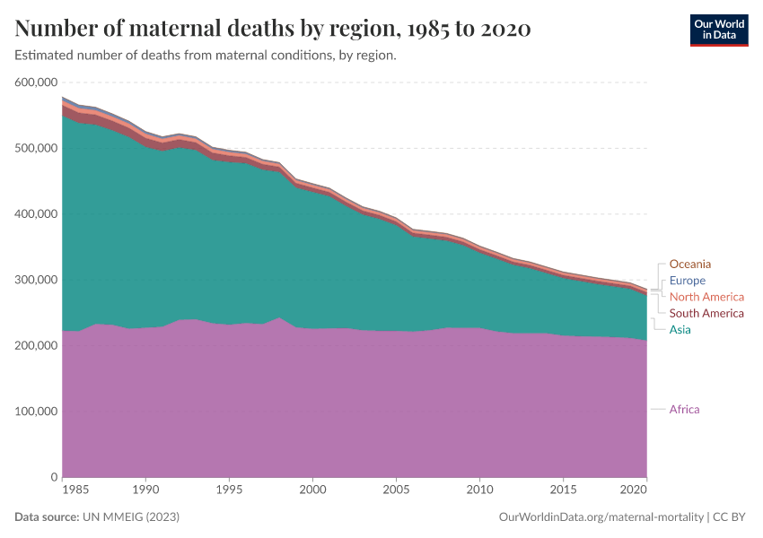 Max Roser and Hannah Ritchie (2013) - “Maternal Mortality” Published online at OurWorldinData.org. Retrieved from: 'https://who-regions.owid.pages.dev/maternal-mortality' [Online Resource]BibTeX citation