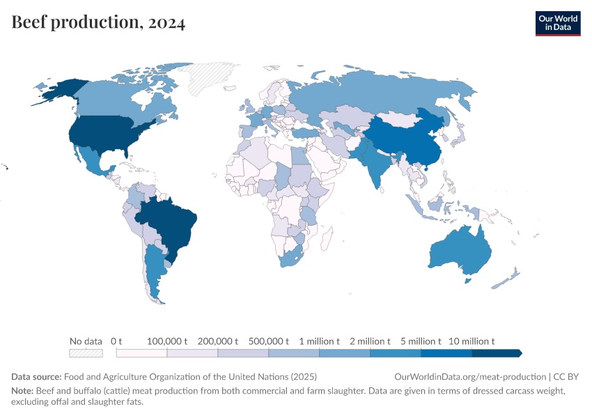 Hannah Ritchie, Pablo Rosado, and Max Roser (2019) - “Meat and Dairy Production” Published online at OurWorldinData.org. Retrieved from: 'https://who-regions.owid.pages.dev/meat-production' [Online Resource]BibTeX citation