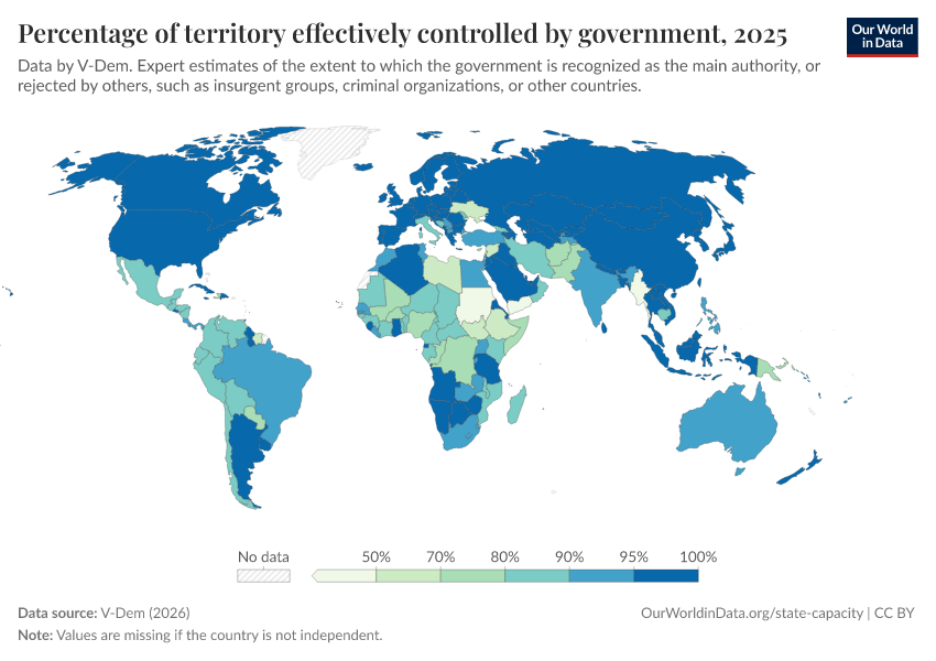 Understanding state capacity is crucial because it shapes a country's ability to address its many challenges. On this page, you can find related data and visualizations on how state capacity differs around the globe and how this has been changing over time.