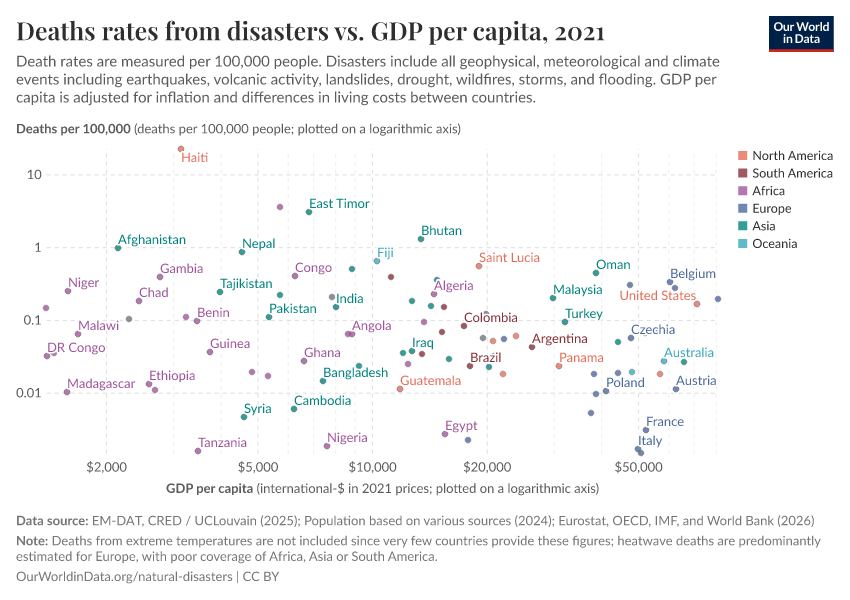 Hannah Ritchie (2024) - “The world has become more resilient to disasters, but investment is needed to save more lives” Published online at OurWorldinData.org. Retrieved from: 'https://who-regions.owid.pages.dev:8789/20260304-094028/the-world-has-become-more-resilient-to-disasters-but-investment-is-needed-to-save-more-lives.html' [Online Resource] (archived on March 4, 2026).BibTeX citation