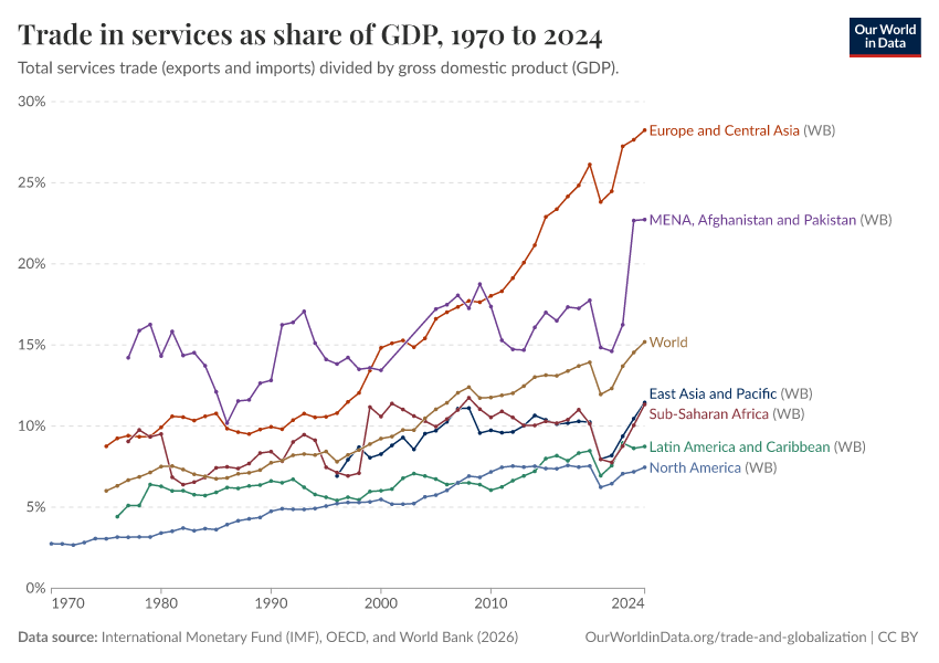 Esteban Ortiz-Ospina, Bertha Rohenkohl, Veronika Samborska, Simon Van Teutem, Diana Beltekian, and Max Roser (2018) - “Trade and Globalization” Published online at OurWorldinData.org. Retrieved from: 'https://who-regions.owid.pages.dev/trade-and-globalization' [Online Resource]BibTeX citation